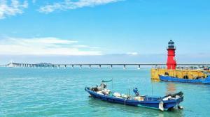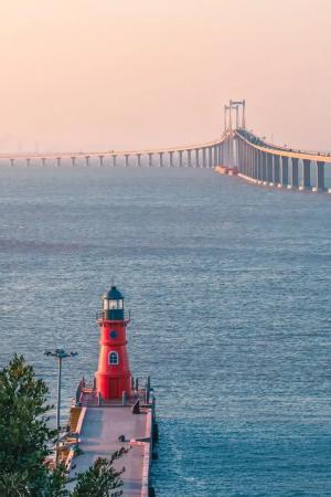 它流畅了汕头市澄海区与南澳县,不辽阔屹立着灯塔与纯白长桥,以及闪闪发光的海面造成了较着对比。