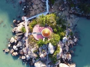 岛上大石相叠,曲径通幽,石窍穿插,阴冷无比,是绝佳的避暑胜地。