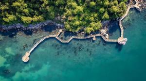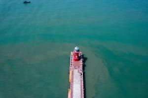 钱澳湾灯塔罗致米黄色的塔身,和碧绿色的塔顶,加以栈桥和陆地相流畅,以蓝色的大海动作布景,充满了无尽的电影画面既视感,让东说念主看到它的第一眼,就念念到了“豪恣”。