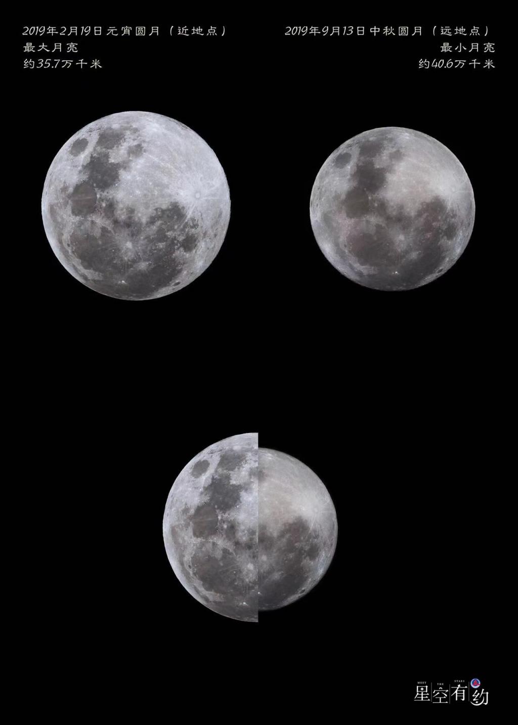 这是2019年度最大朔月和最小朔月(拼版)。(袁凤芳摄)