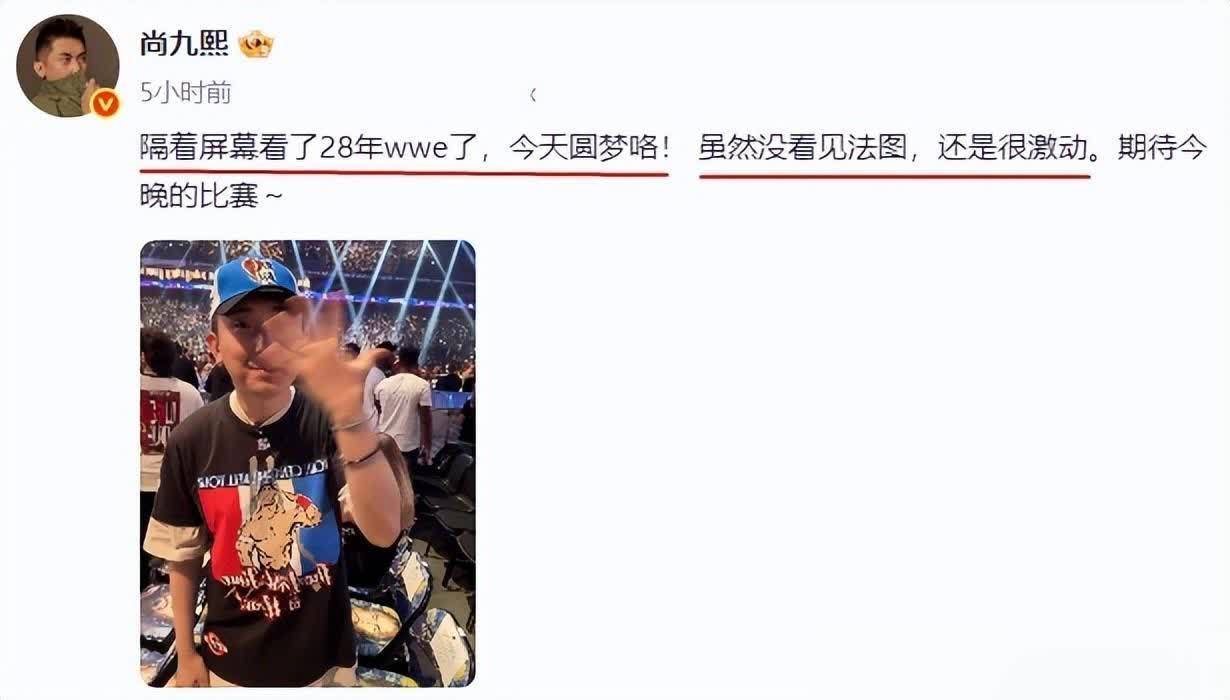 德云社尚九熙凌晨发文,直呼圆梦西班牙。是什么让尚九熙如斯振奋,如斯高亢呢?尚九熙披露,看了28年的WWE,今天圆梦了,天然没看见法图,但照旧很高亢的。圆梦的这一刻,天然是要拍照挂念的。从像片可以看出,尚九熙衣裳前卫,欧洲放假景象好。尚九熙什么时候去的欧洲呢?为什么要安排放假呢?郭霄汉信守小戏院,尚九熙什么时候追溯呢?