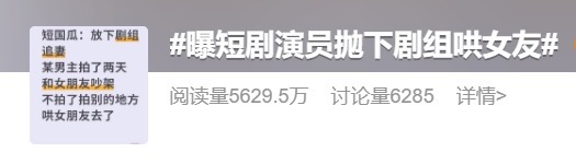 近日,话题“曝短剧演员抛下剧组哄女友”登上热搜。