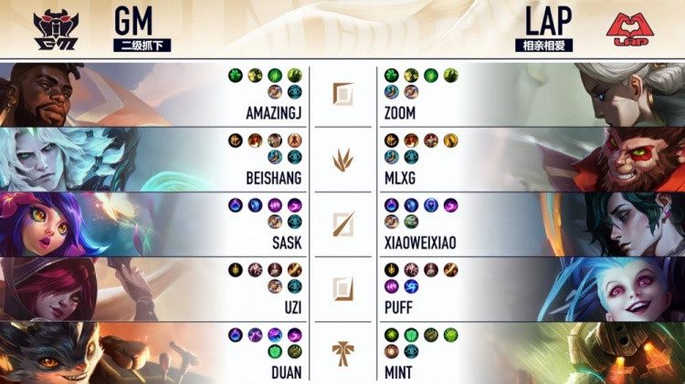 [26:36]卡蜜尔河说念奎桑提捏到,乌兹队举全队之力将其击杀回头再开大龙,泰坦钩到兰博两边拉扯,妮蔻收掉大龙,山公进场开大留东说念主击杀佛耶戈,金克丝最先击杀兰博再杀奎桑提,妮蔻一身无援被击杀,Zoom队打出0换5团灭乌兹队,两边经济持平。