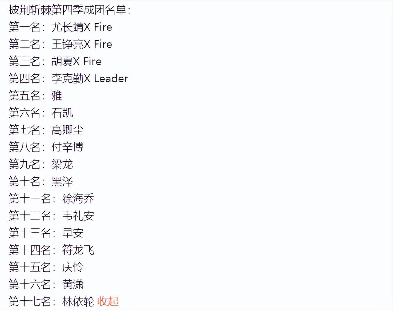 看到成团的名单后,许多网友都不淡定了,而石凯的名次引起的争议最大,咱们可以看到,石凯取得第六名,前五名是:尤长靖、王铮亮、胡夏、李克勤、雅,最让石凯粉丝不敢信服的是,李克勤取得“X-Leader”,尤长靖、王铮亮、胡夏取得“X-Fire”,也即是说,四位队长只须石凯什么都莫得取得,名次还掉到第六名。