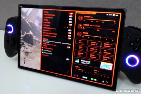 况且除了插在屏幕两旁酿成掌机外,两个分时局手柄还可以像NS一装配在专用的手柄基架上,成为一个完整的手柄,通过基架内置的无线戒指器辛劳操控。这时你就可以将屏幕支在眼前狠狠爽玩了。独一需要介意的是,若是你用惯了老例手柄,可能要花少量时期来顺应它相当轻巧的重量,但总体来说,这个经心调教过的手柄透顶可以耕种你的游玩体验。