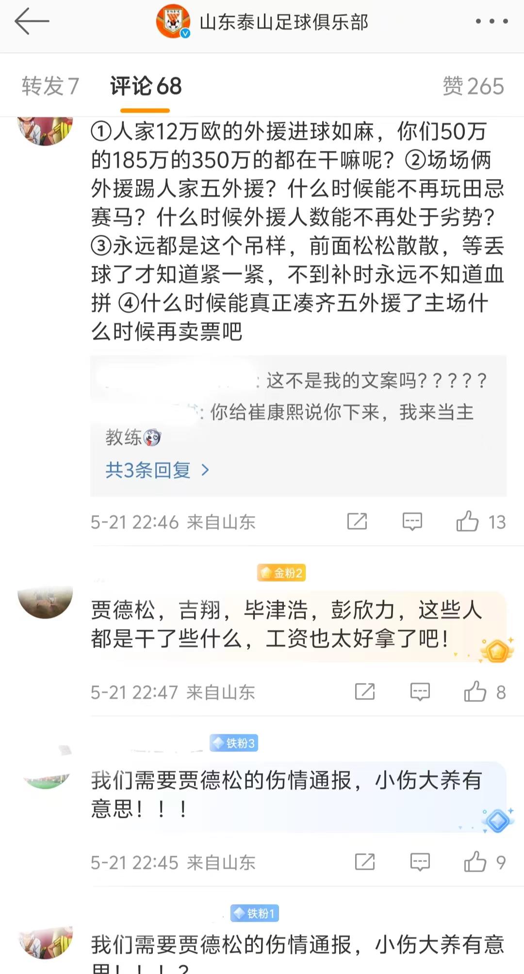 不外关于泰山队官网的这个动态,山东泰山球迷反应的本色却和泰山队官网舒坦比赛的气派不同,从多位泰山球迷让泰山官网很吵杂并点名了贾德松、毕津浩、彭欣力、吉翔这4位球员后,他们这4东谈主齐是干了什么?薪水也太好拿了的声息,更让贾德松酿成了焦点,念念要贾德松伤病通报的泰山球迷,也不必婉词的觉得:但愿长久不踢比赛的贾德松别是小伤大养。