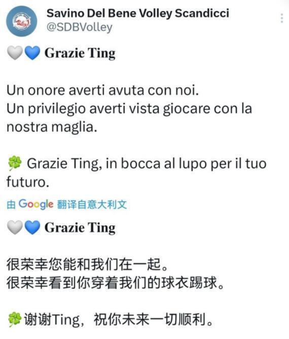 官方音书,朱婷离开意大利斯坎迪奇俱乐部。斯坎迪奇写谈:有你和咱们在沿路,很庆幸。能看到你穿咱们的球衣,很庆幸。谢谢朱,祝你好运欧洲杯体育,异日一切告成。
