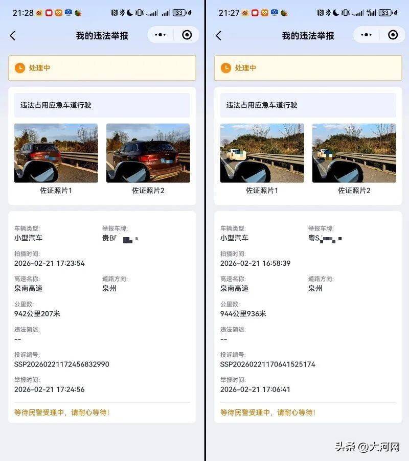 “十八孖”示意,我方花了大约半个多小时,累计举报了20多辆违规车辆。现在系统响应有3辆车因像片特征不明显或泄漏度不够导致举报失败,其余皆在处理中。