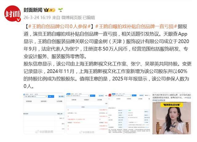 在股权结构上,该公司由上海王鸥影视文化使命室、张宁、吴翠英共同捏股。值得选藏的是,一项关节的股权变更发生在2024年11月,上海王鸥影视文化使命室新增为公司鼓吹,并以60%的捏股比例成为控股鼓吹,这炫耀了王鸥本东谈主对品牌律例权的加强。干系词,把柄该公司2025年度的年报信息,其参保东谈主数炫耀为0东谈主。