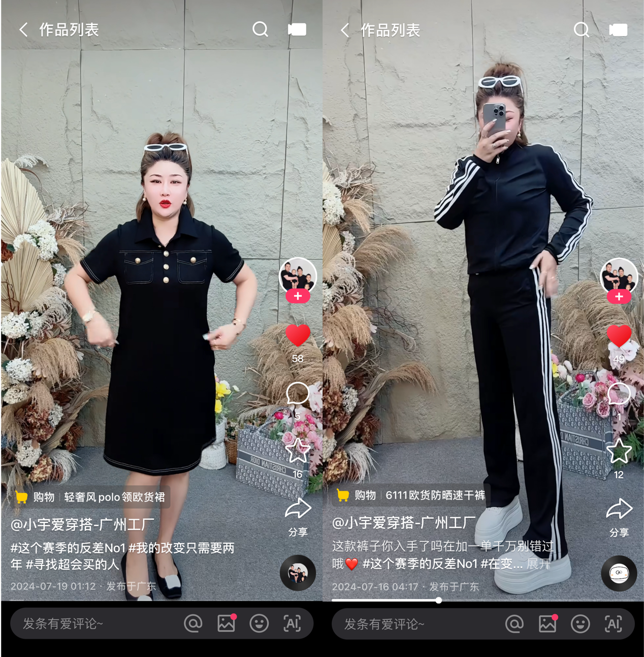 大码女装对版型和作念工有着更高的条目,“版型要修饰体型,面料也有稳重,要弹、要欣然、还要不易起球,不然衣着质料不成,对客户来说不合算”。小宇箝制晋升峻码衣饰的打版效力和作念工质料,同期也达成更高性价比,得益了越来越多客户的爱重。“咱们品牌定位比较了了,最启动直播就在工场里,一边作念一边播,作念好凯旋发货,一目了然,粉丝粘性会比较强。”